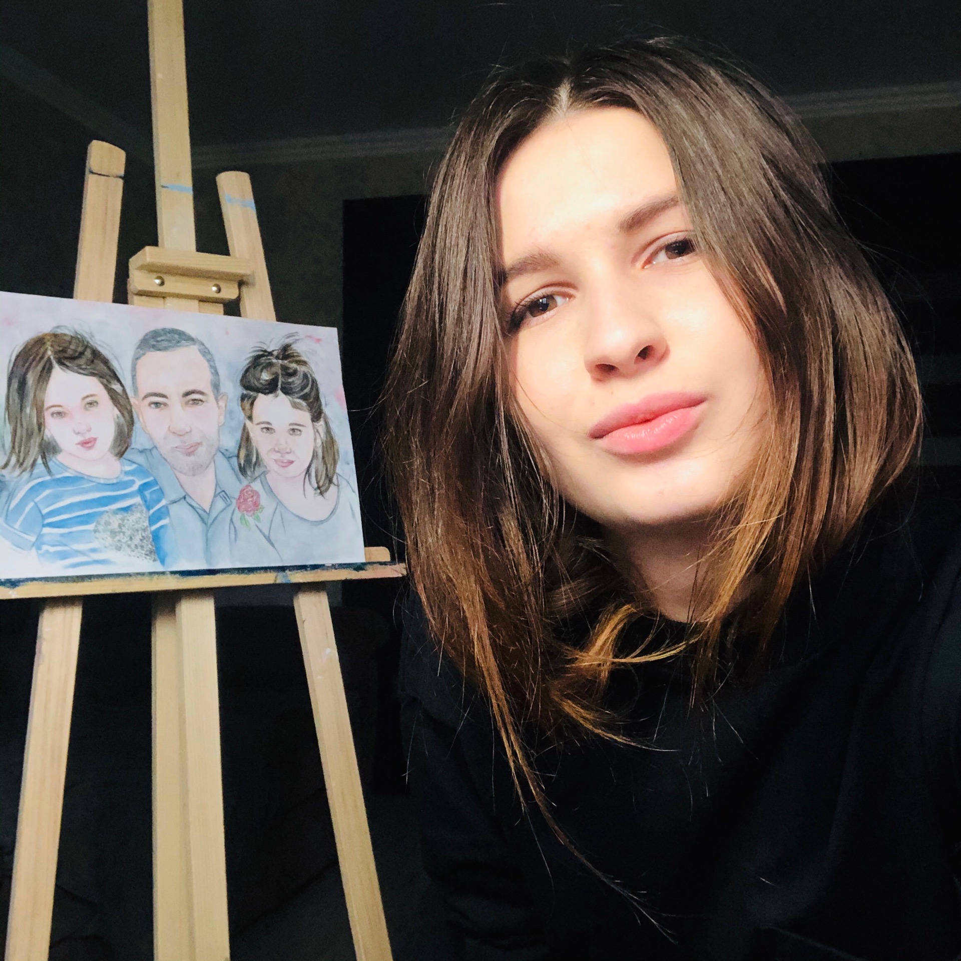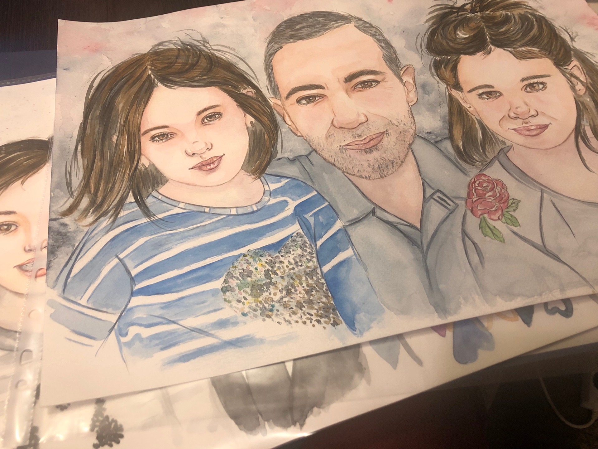 I want to show you the portrait that my family from the USA ordered. There is another portrait of this family, but only I painted it in another photo.