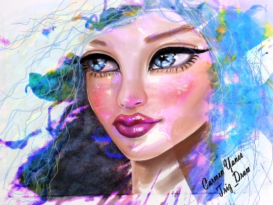 Portrait with traditional watercolors and digital art