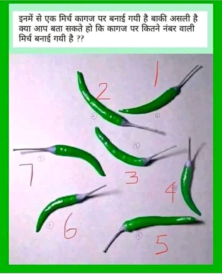 Let's see who's intelligent.jasbir3088 (19)in #general • 8 years ago As all of u see in pic- tell which green chilly is drawing on paper and rests are real? #knowledge