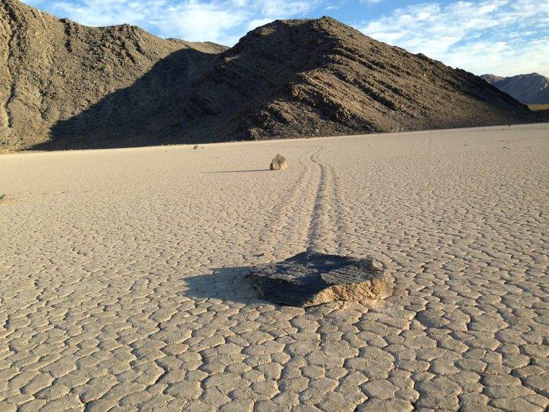 In death valley, rocks are transported slowly across the sand from the wind alone.