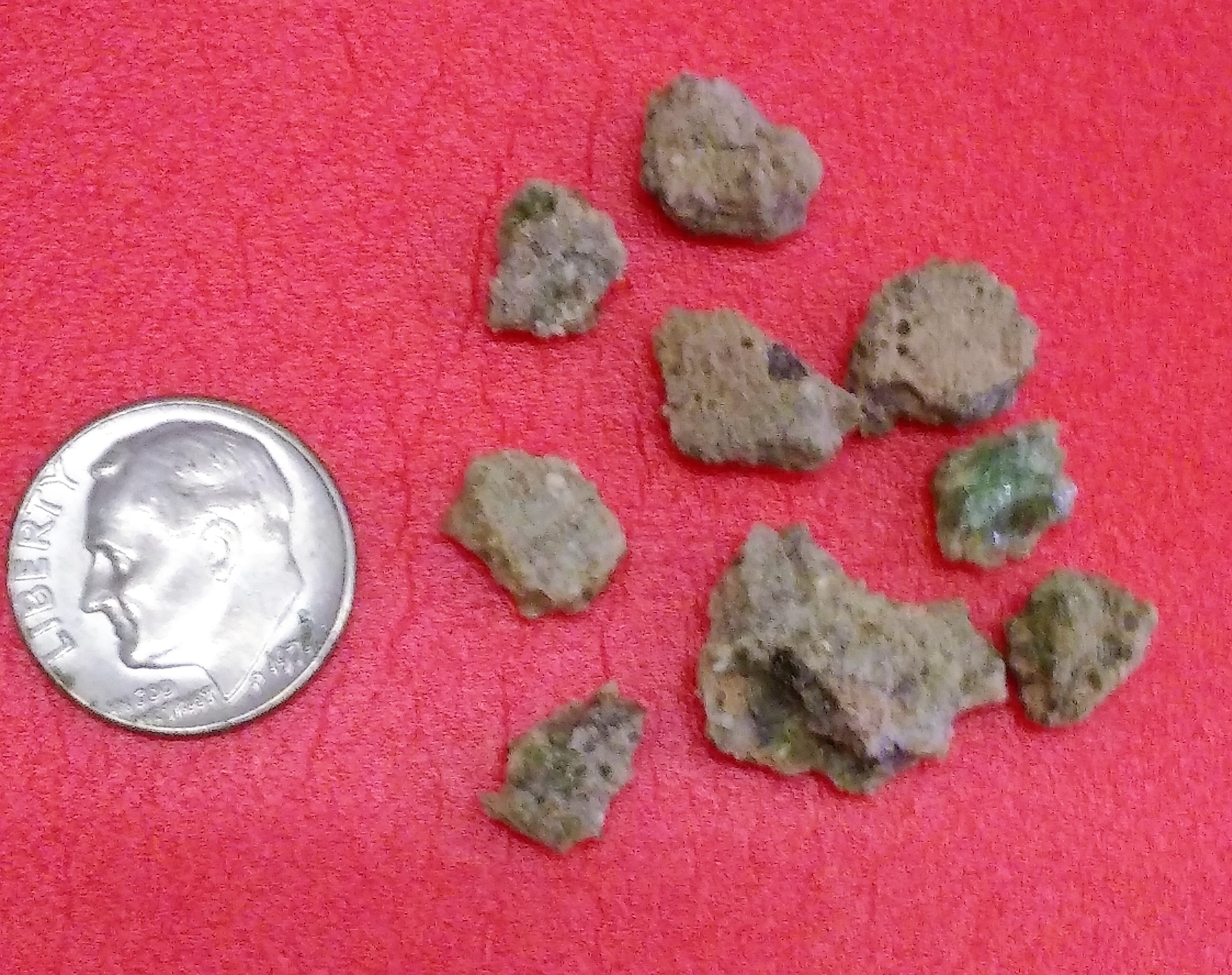 Today a friend of ours brought in a bag of small Trinitite pieces.