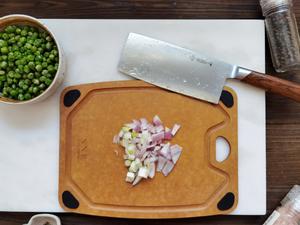 If you are using fresh peas, add water and salt to the pot, cook for 7 minutes, and then transfer the peas to ice water and set aside.