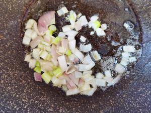 Sauté the onion and scallion whites until they become soft, but avoid letting them brown.