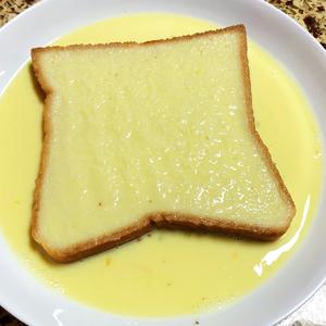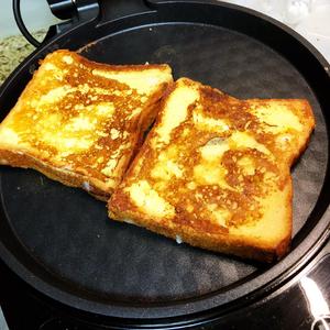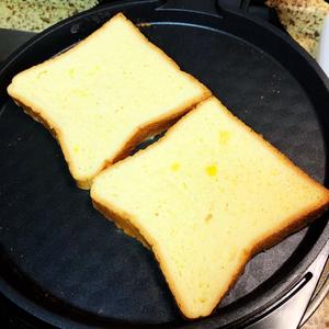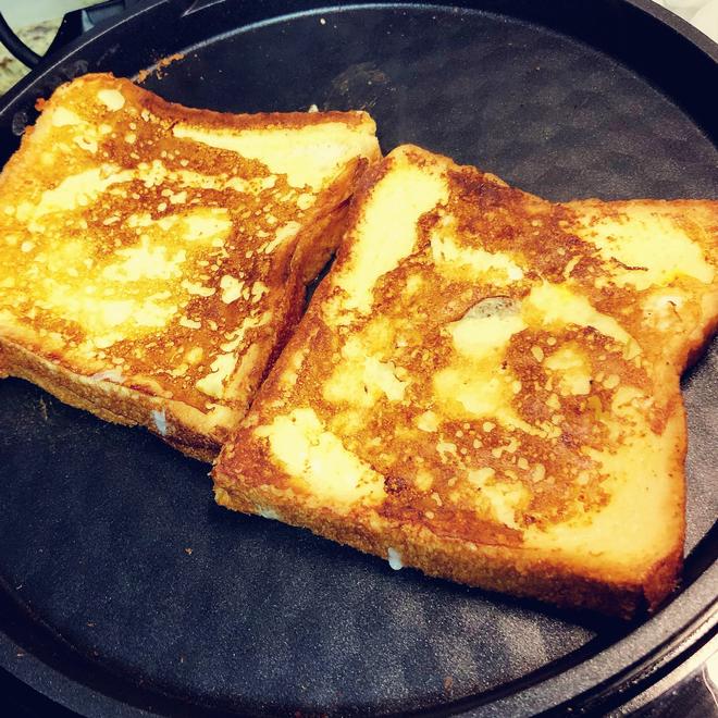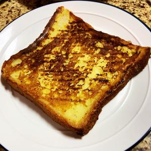 Take the toast out. This piece was fried a bit longer. Usually, about 3 minutes is enough.