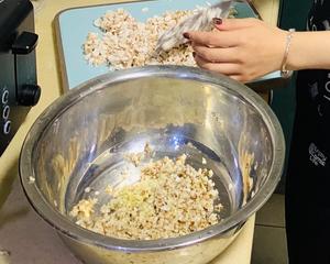 Dice the garlic, portobello mushrooms and shiitake mushrooms as small as possible. Put them into the pan used for frying the steak just now, and stir - fry them over low heat with the remaining oil. Stir - fry the mushrooms until they are dried out to prevent water from seeping out during baking. You can add a little soy sauce to enhance the flavor while stir - frying. After they are dried out, take them out and let them cool for later use.