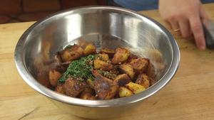 Remove from the oven, add the minced garlic and rosemary that were filtered out earlier, and add appropriate amount of chopped parsley.