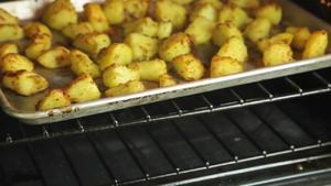 Put it in the preheated oven and bake at 230 degrees (200 degrees in the convection oven) for 20 minutes, then take it out and turn the potatoes over, then bake for another 20-40 minutes, depending on the size of the potatoes and the condition of the oven.