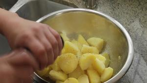 Mix the filtered oil with the cooked and drained potatoes, add appropriate amount of salt and black pepper, and shake well.