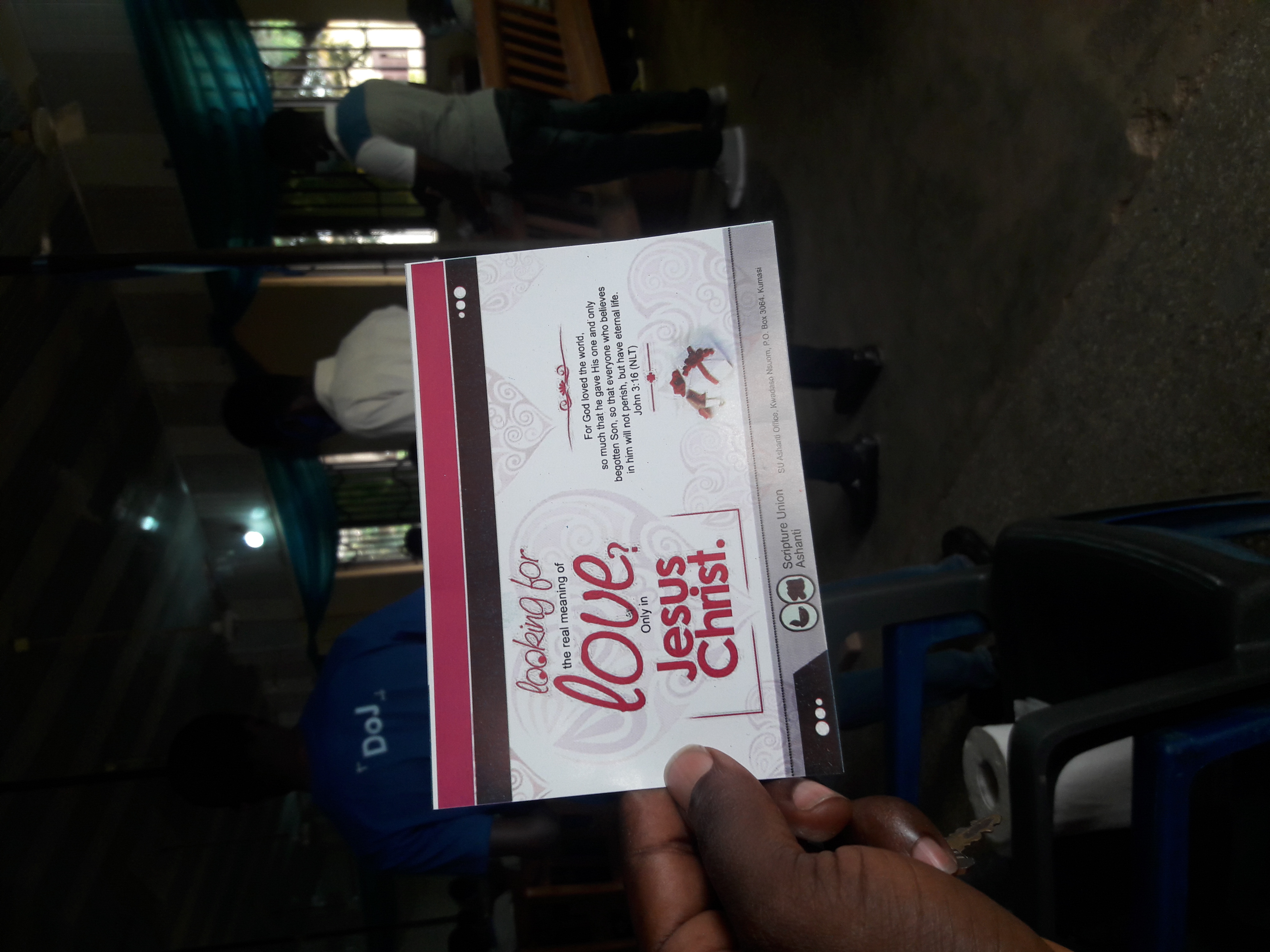 The scripture union are organisation who has take it upong themselves to extend the word of God to places.and God been so good the brought a letter to Nsuta S D A jhs where i teach to talk to our students so my master permit them to do that .