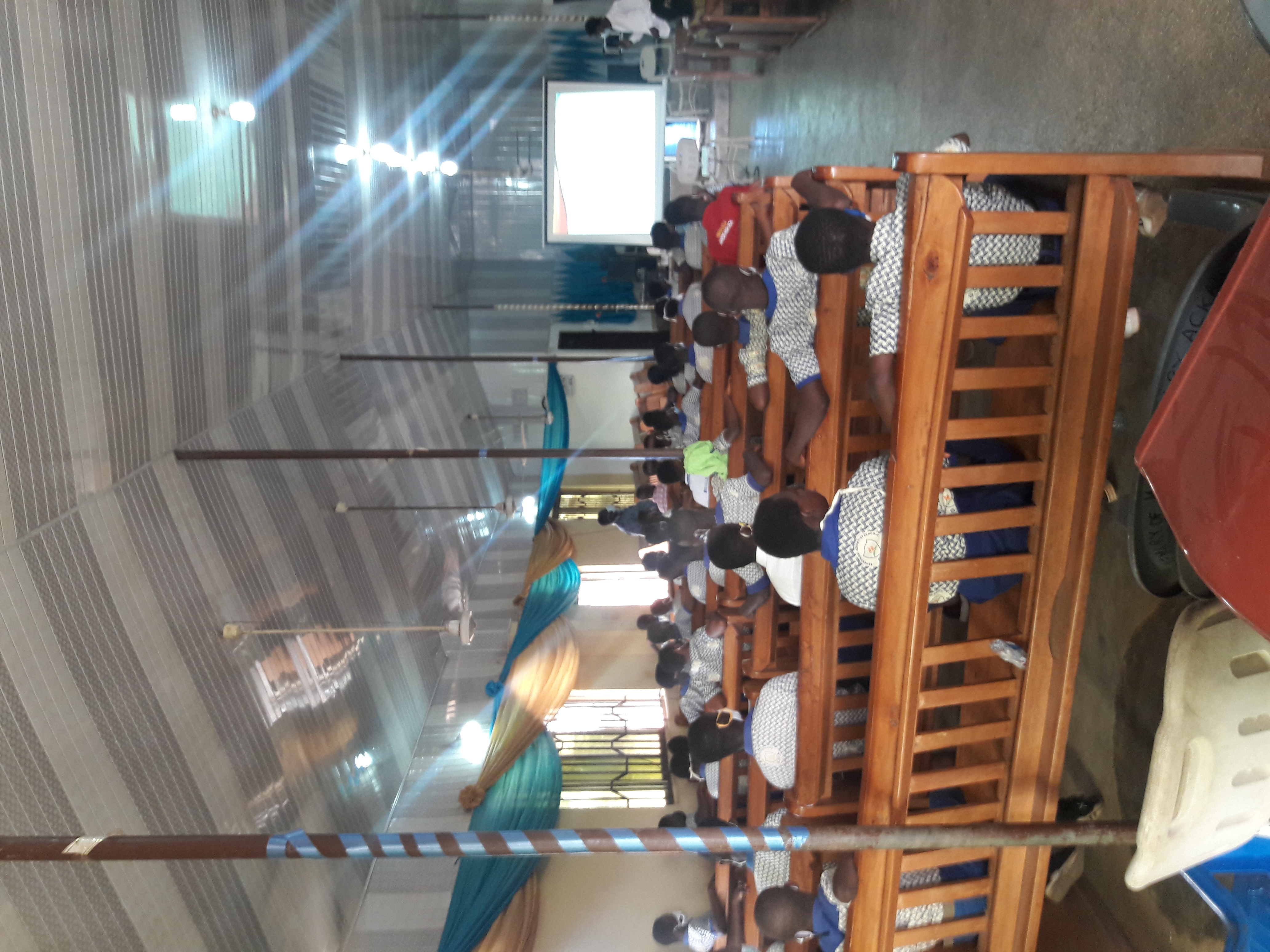 In ther morning after grounds work the came so we led all our student to the church premises where the program will comence .