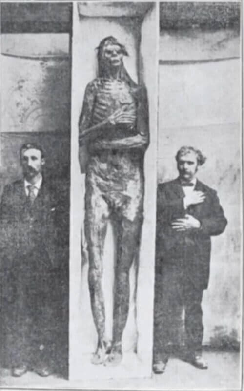 The mummified exhibits measured 8.5, and 10 feet in height respectively. The technique used in their mummification reminded of the methods used by ancient Egyptians. Probably the most intriguing find was the red hair samples recovered from both sites, the linking factor of this equation.