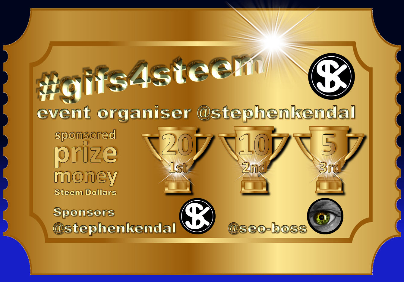 Entries must include as a minimum, the following x5 tags: #gifs4steem #steemexclusive #steem #promo-steem #stephenkendal