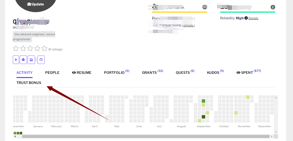 按顺序点开,就能打开你的个人主页了,然后选择TRUST BONUS