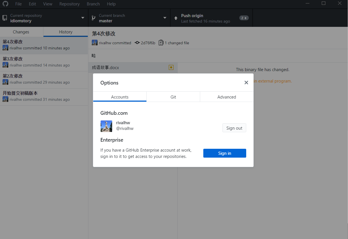 I tried to set up some new files and modify them for several times, commit different versions as the image in the above. >我尝试着新建文件,并修改了几次,然后提交了几次版本,如上图。