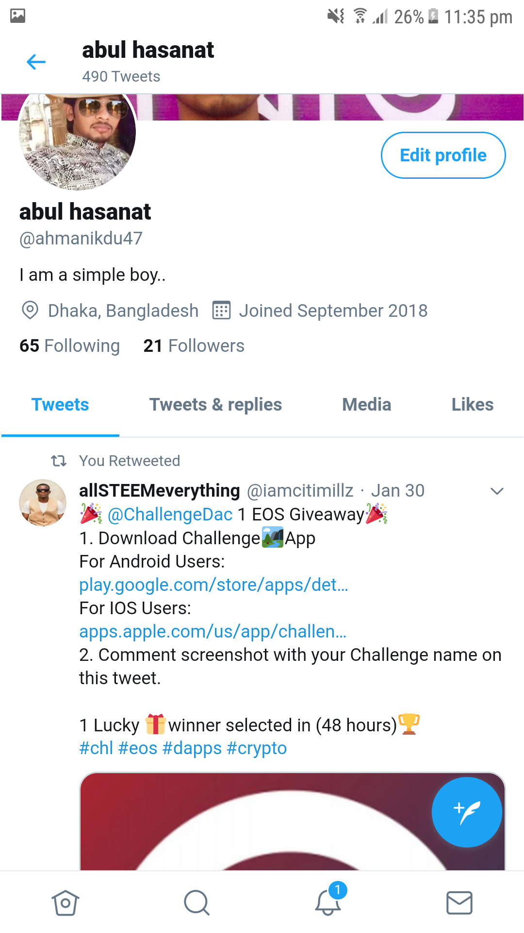 I am giving away 1 EOS to a lucky winner who will carry out the simple task on this tweet. Drop Screenshot of proof on the tweet. Contest ends in less than 48 hours from now. Challengeeos App has it's team based in San Diego, California.