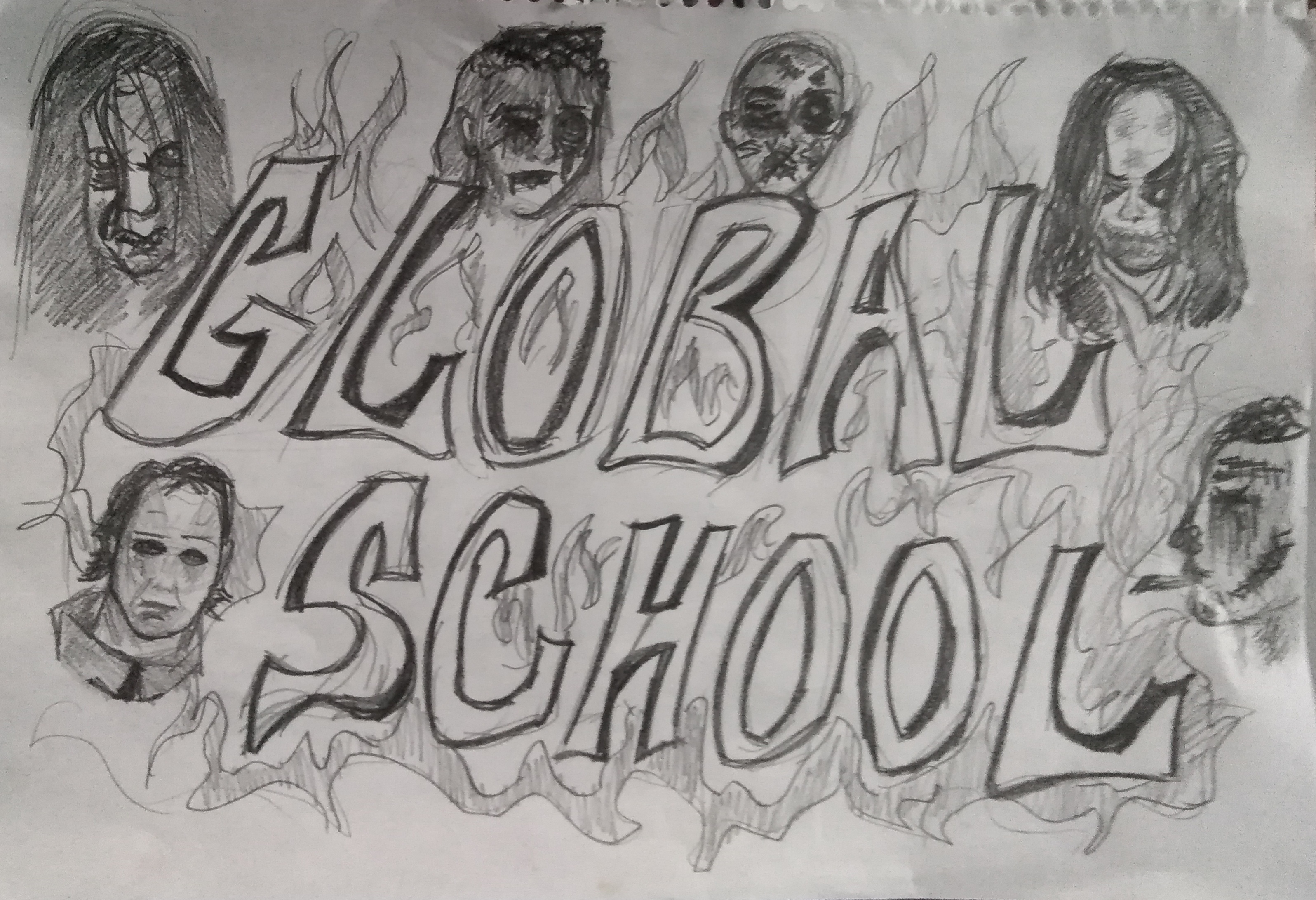 There is a theme that was graffiti. The subject was freely selectable so we chose the horror genre. We went to a place where we were looking at the work of others.