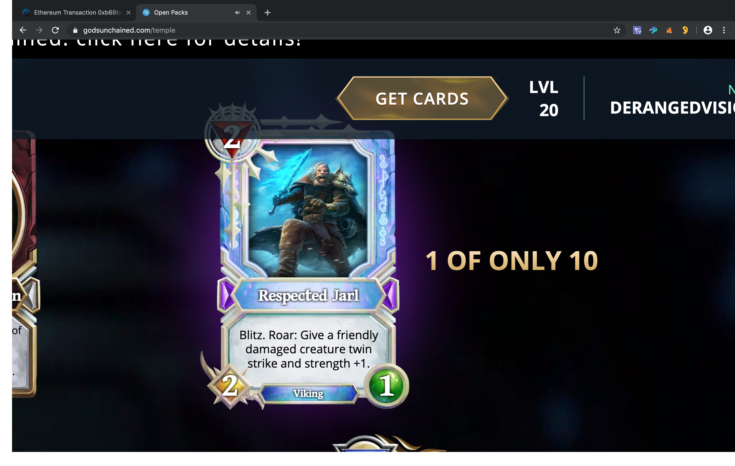 Anyway, super excited about this update and now I will have to face the most difficult decision of my life to try and not open the chests but keep them closed so they appreciate in value. If you go to https://godsunchained.com/temple you can check if you have received yours yet (they are sending them out over the next 24h) but it should also be noted that purchases after eth block 8666666 won't count towards the free chests (about 13 days ago).
