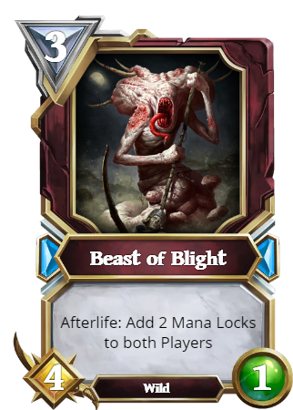 The Beast of Blight is a simple neutral Creature. It's low health means that it likely won't ever stick around for long, but the Afterlife effect is really why you would want to play this. Could potentially be too powerful with Death decks that interact with the Void.