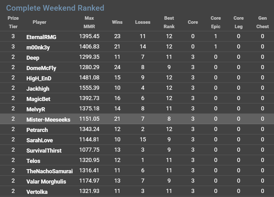 So after working a 12 hour shift last night and getting off at 5 am I made it home to realized that the weekend tournament was about to gear up. So as soon as the timer went to zero and started the grind. Even with me being tired it felt like I was on fire.