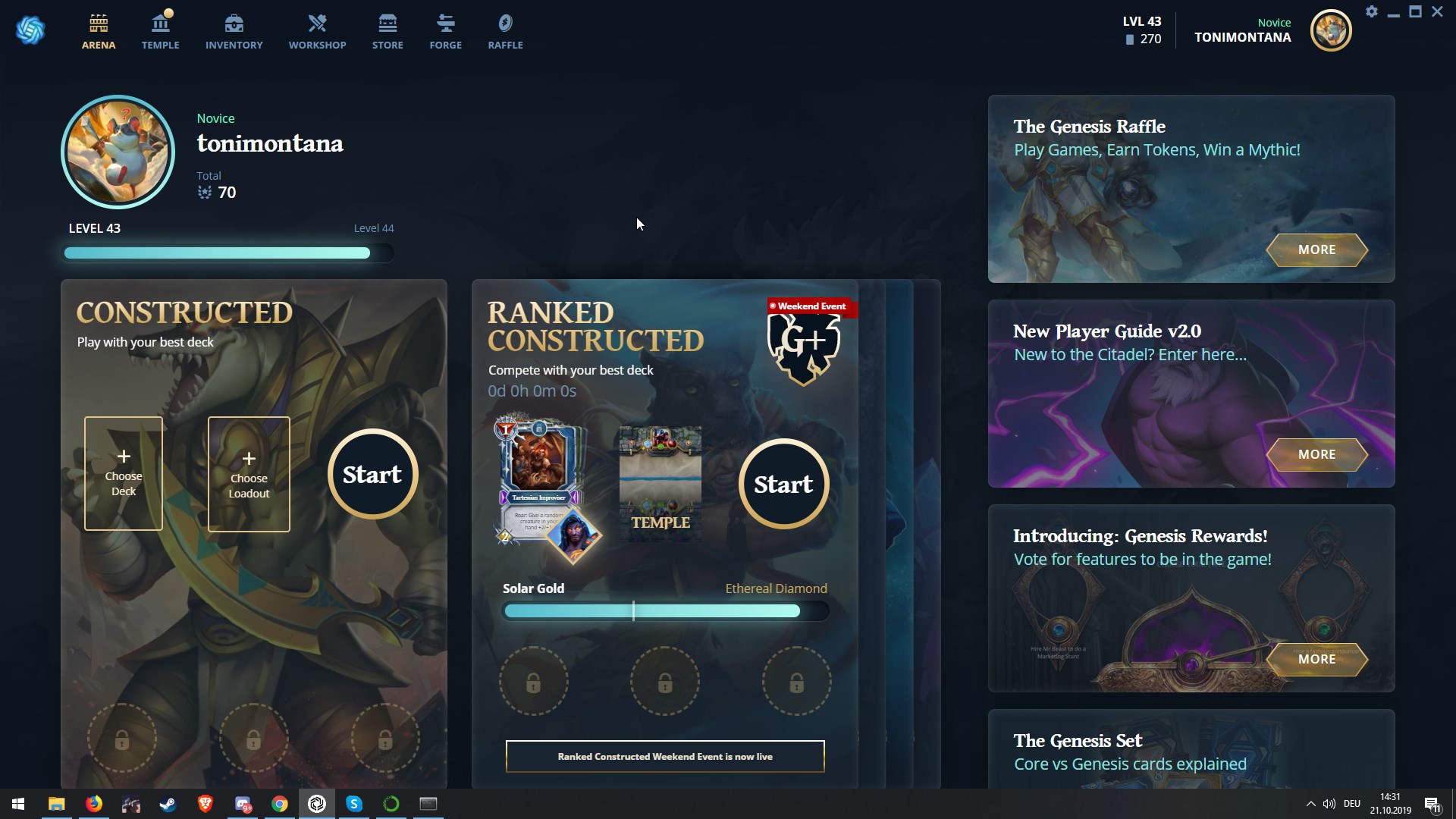 With my custom Death deck I went down from Midnight Shadow to Astral Meteorite. I then put together a Nature Deck which is fun to play and helped me gain 35 Wins! Guess i´ll aim for Gold next :)