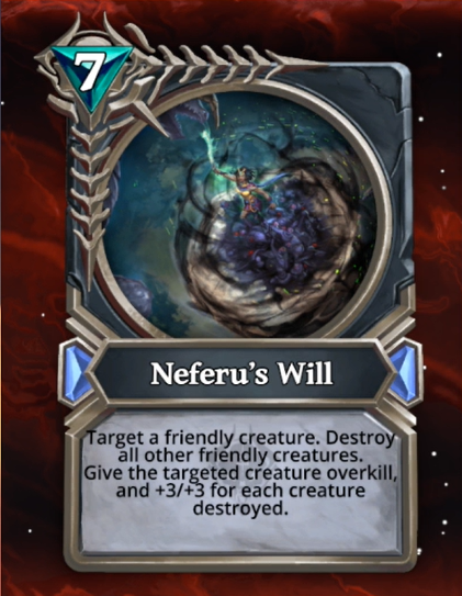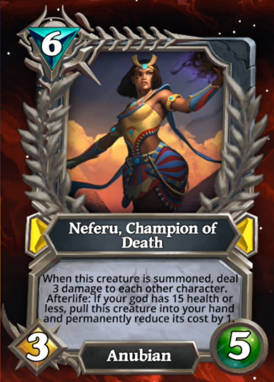 Hey guys! Yesterday we had a second champion reveal, Neferu, Champion of Death and couple of cards. If you are interested in watching the VOD of the official Gods Unchained stream I'll leave the link here.