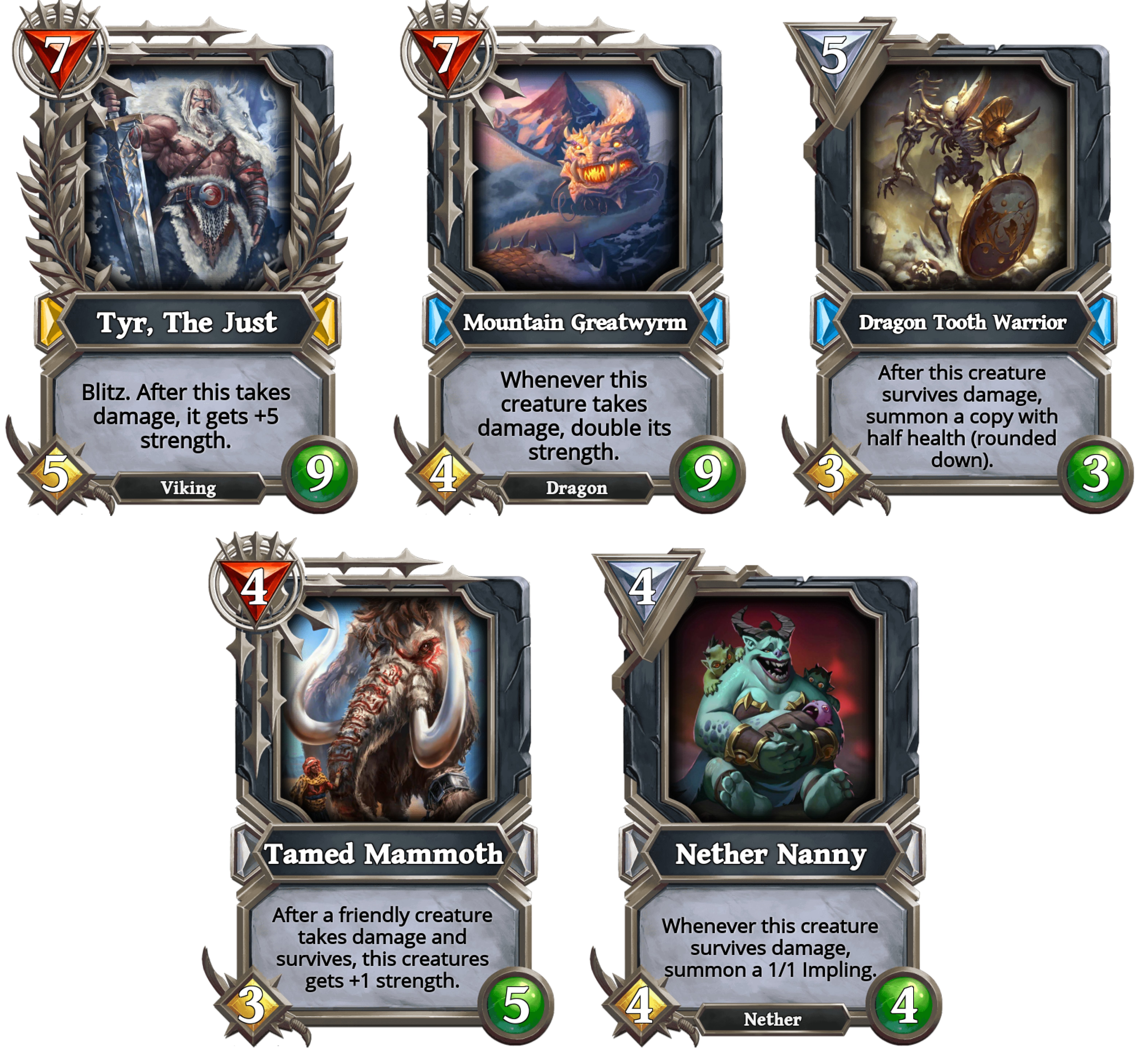 The worst examples are Tyr and Mountain Greatwyrm but not too far fetched. Tyr can trade on the first turn that is summoned and the next turn after enrage and a second trade he already has 22 strength which needs to get removed or straight up wins the game. Greatwyrm has the same function even tho it can't attack the same turn it was played. On the second turn after enrage and a single trade will result in 24 strength!