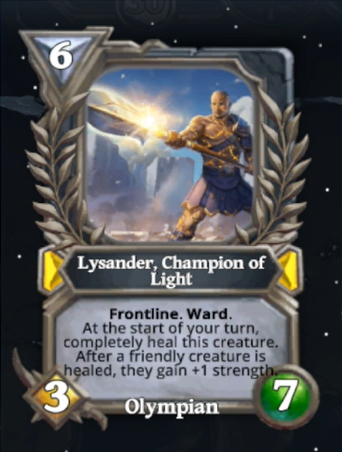 Hey guys! Yesterday we had an official stream from Gods Unchained team where they announced more details including the first champion that will be a new avatar for Light called Lysander, Champion of Light, also we got to see a couple of new cards that will be added to the Olypian tribe synergy and a late-game War spell.