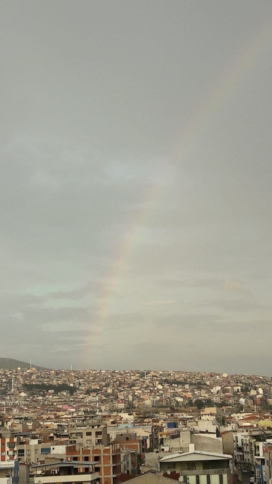 Bu zamana kadar gördüğüm en güzel gökkuşağı. Öyle kocamandı ki bir uçtan bi uca kadar üzerinden hooop kaymak istedim aynı çizgi filmlerdeki gibi. gerçekten öyle şeyler olsa ne güzel olurdu:) Belki bi gün olur gökkuşağının üzerinden kayarız. Hooopp diye :)