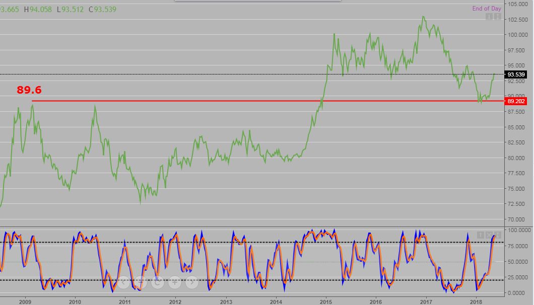 Here is a weekly chart of the US Dollar index, you can see that the 2009 highs provided support in 2018, 9 years latter...