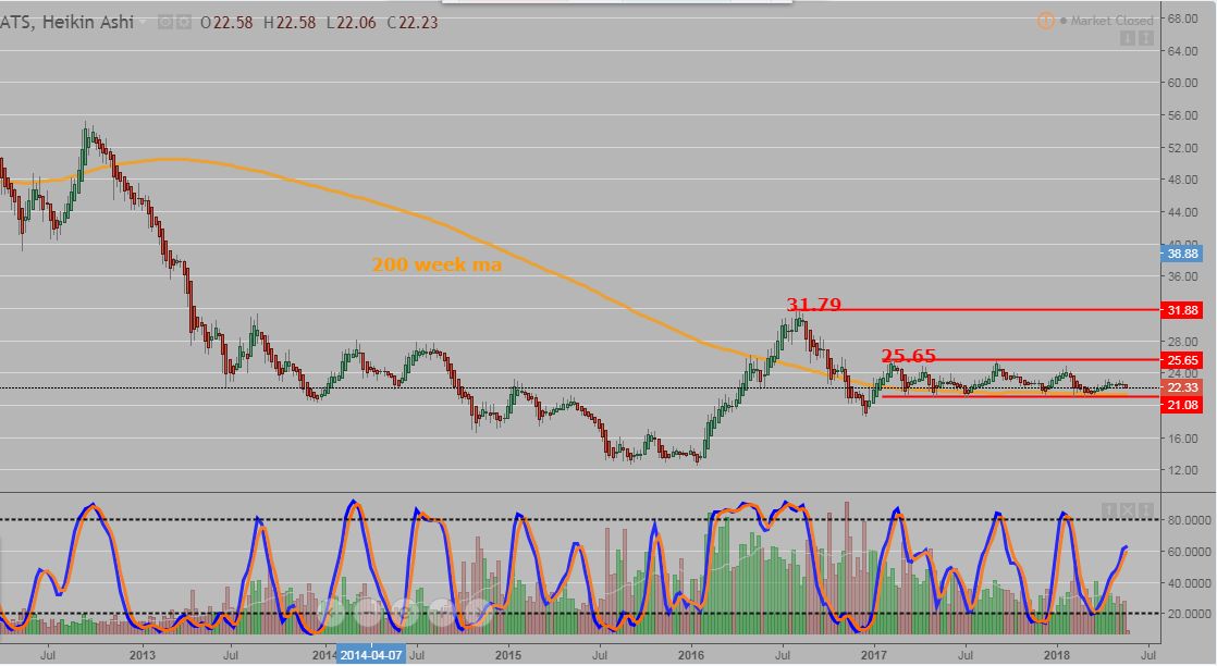 The 100 month moving average is the purple line and it appears to be providing some resistance.