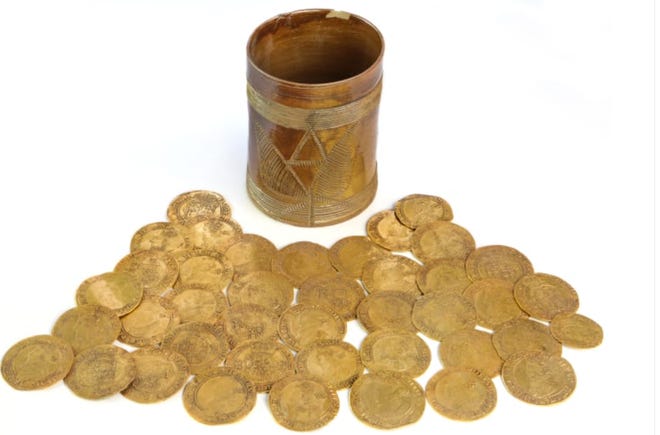 This gold discovery, made by the couple renovating their kitchen in a small village in North Yorkshire, is considered to be one of the biggest stockpiles of 18th-century English gold coins ever uncovered in Britain. Spink & Son said to USA Today that the discovery is one of the most influential ones in recent years. The couple found the gold stash in July 2019, when they discovered a salt-glazed cup burrowed underneath the concrete of their old home in Ellerby, England.