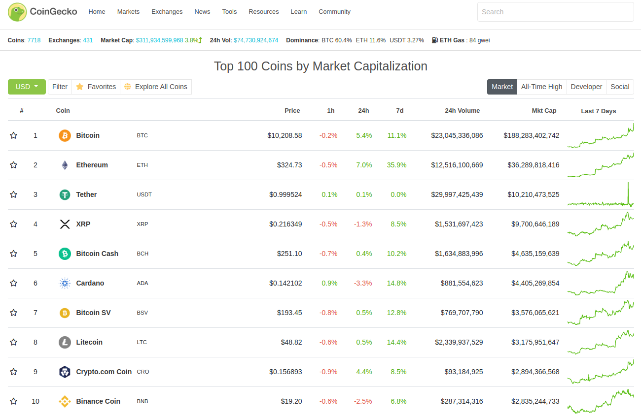 Top ten chart from CoinGecko below: