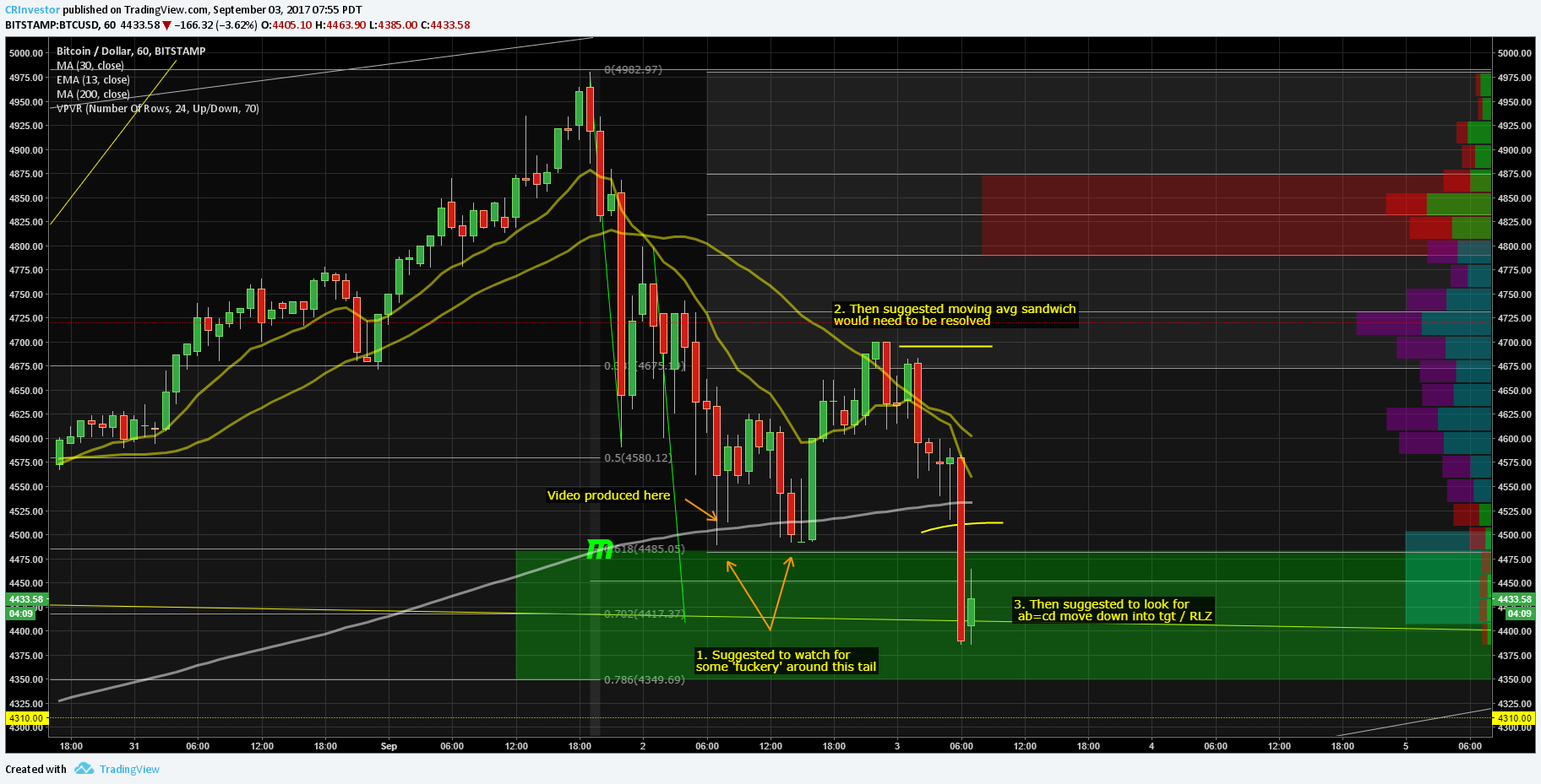 Let's get to Bitcoin. Crypto legend, Canadian Rational Investor, Brian Beamish put out this short term chart over the weekend in light of the correction: