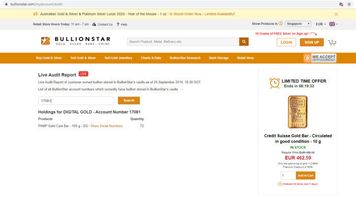 This is very easy to validate certificates because Digital Gold provides storage live audit data on the page and everyone can check everything carefully https://www.bullionstar.com/myaccount/audit.
