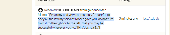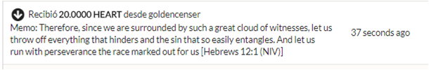 ii. Provide evidence of your transfer to Golden Censer, your prayer on the memo, and share with us what the word of the Bible received from Golden Censer meant to you