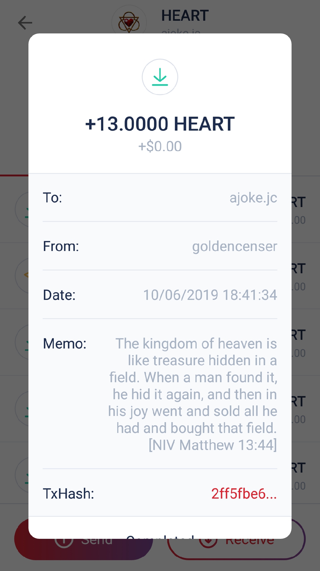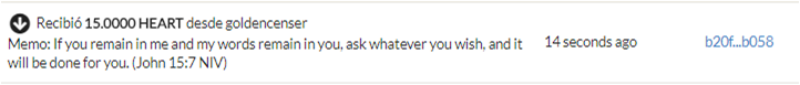 ii. Provide evidence of your transfer to Golden Censer, your prayer on the memo, and share with us what the word of the Bible received from Golden Censer meant to you