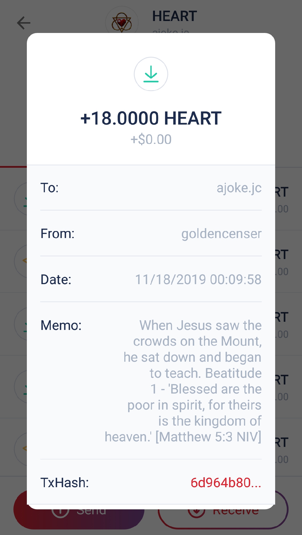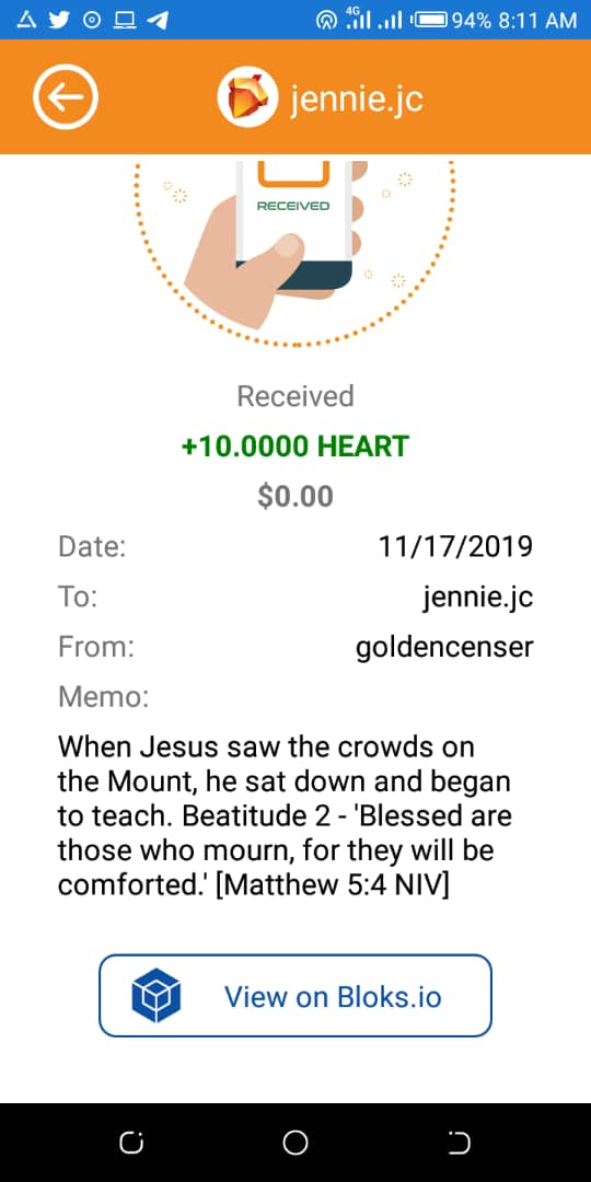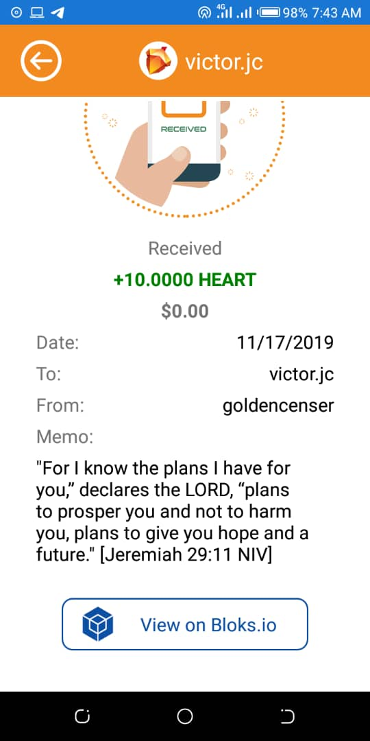 ii. Provide evidence of your transfer to Golden Censer, your prayer on the memo, and share with us what the word of the Bible received from Golden Censer meant to you