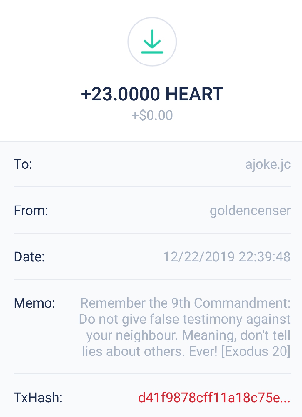 ii. Provide evidence of your transfer to Golden Censer, your prayer on the memo, and share with us what the word of the Bible received from Golden Censer meant to you