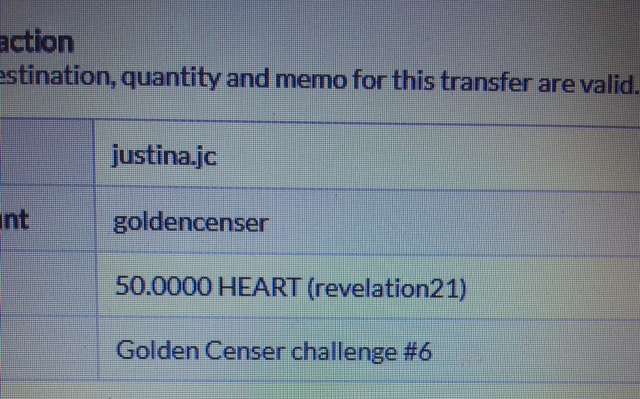 i. Evidence of the transfer (screenshot like mine above, with the word you received from Golden Censer)