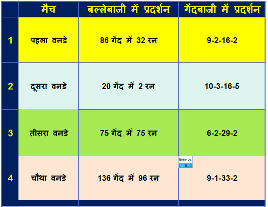 4 मैचों का प्रदर्शन
