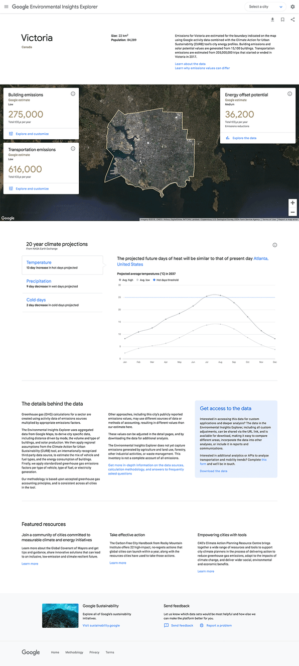 The Environmental Insights Explorer calculates emissions from buildings, car trips, and public transport to illustrate how a city’s sustainability efforts are faring