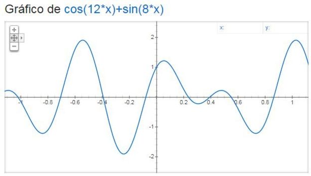 Pero si necesitas resolver ejercicios más complejos puedes escribir directamente la fórmula y Google hará la tarea. Prueba por ejemplo escribiendo esta ecuación y verás como el buscador la grafica automáticamente: cos(12x)+sen(8x).