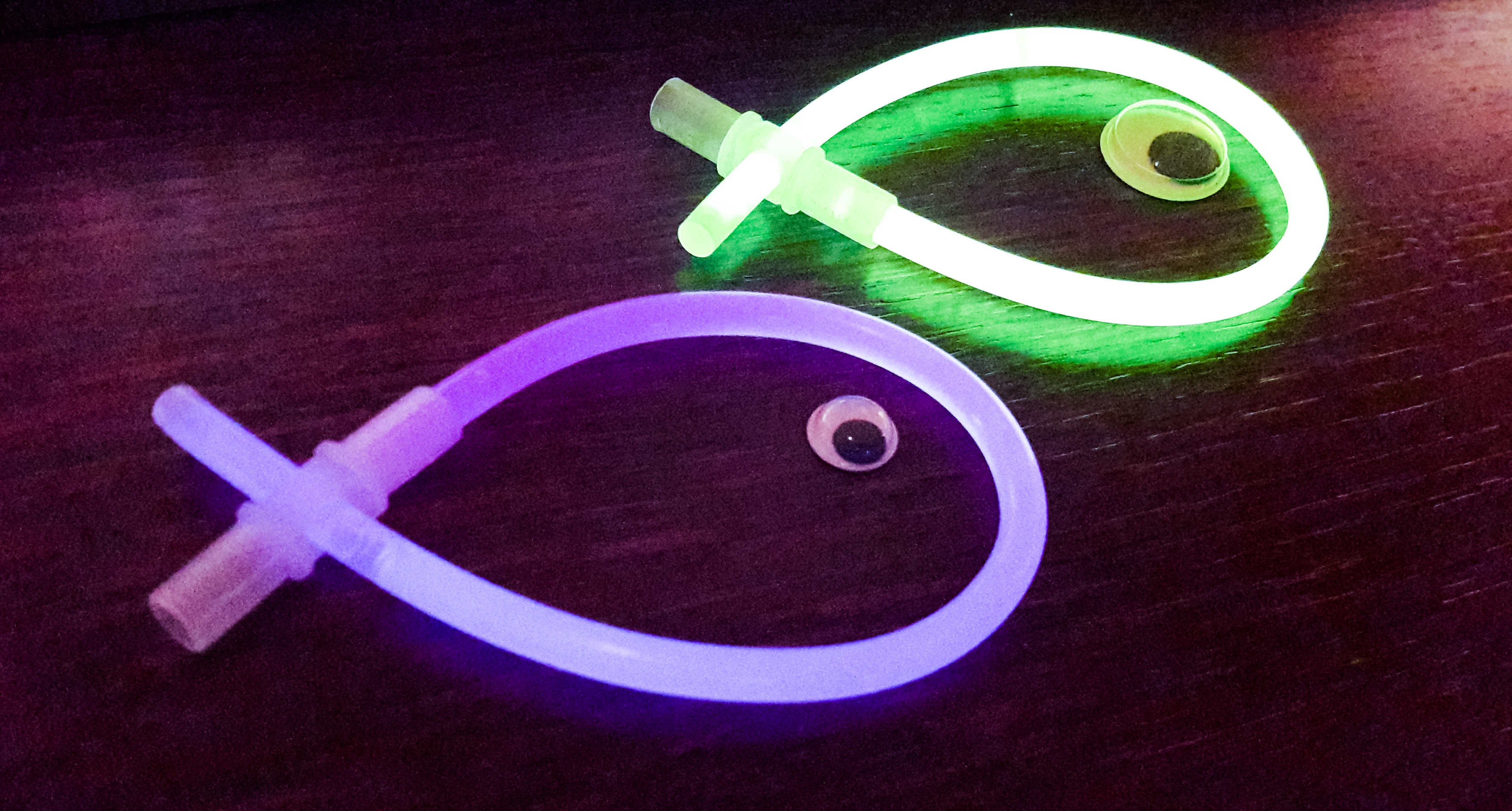 The cocktails came with glowing rings as decoration. I looked at the glowing rings and saw they were adjustable. Suddenly I just couldn't fight it. I had to make glowing googly fish 👀