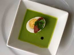 Agrega ahora otra cucharada de mantequilla y un poco de aceite y súmale los guisantes. Deja que cuezan entre 5 y 10 minutos. Retira del fuego y tritura todo. Pasa por el chino, y ¡ya está lista la crema! Cuece dos huevos hasta que se endurezcan completamente. Sirve en los platos la crema y completa con el huevo duro troceado y decora con unas ramitas de perejil.