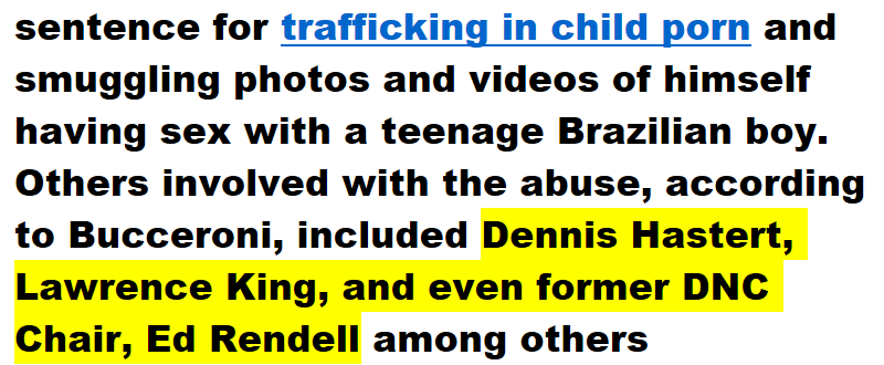 Others involved with the abuse, according to Bucceroni, included Dennis Hastert, Lawrence King, and even former DNC Chair, Ed Rendell among others![]