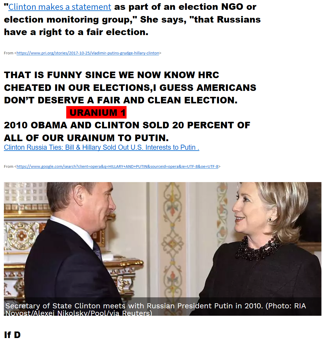 2010 OBAMA AND CLINTON SOLD 20 PERCENT OF ALL OF OUR URAINUM TO PUTIN.