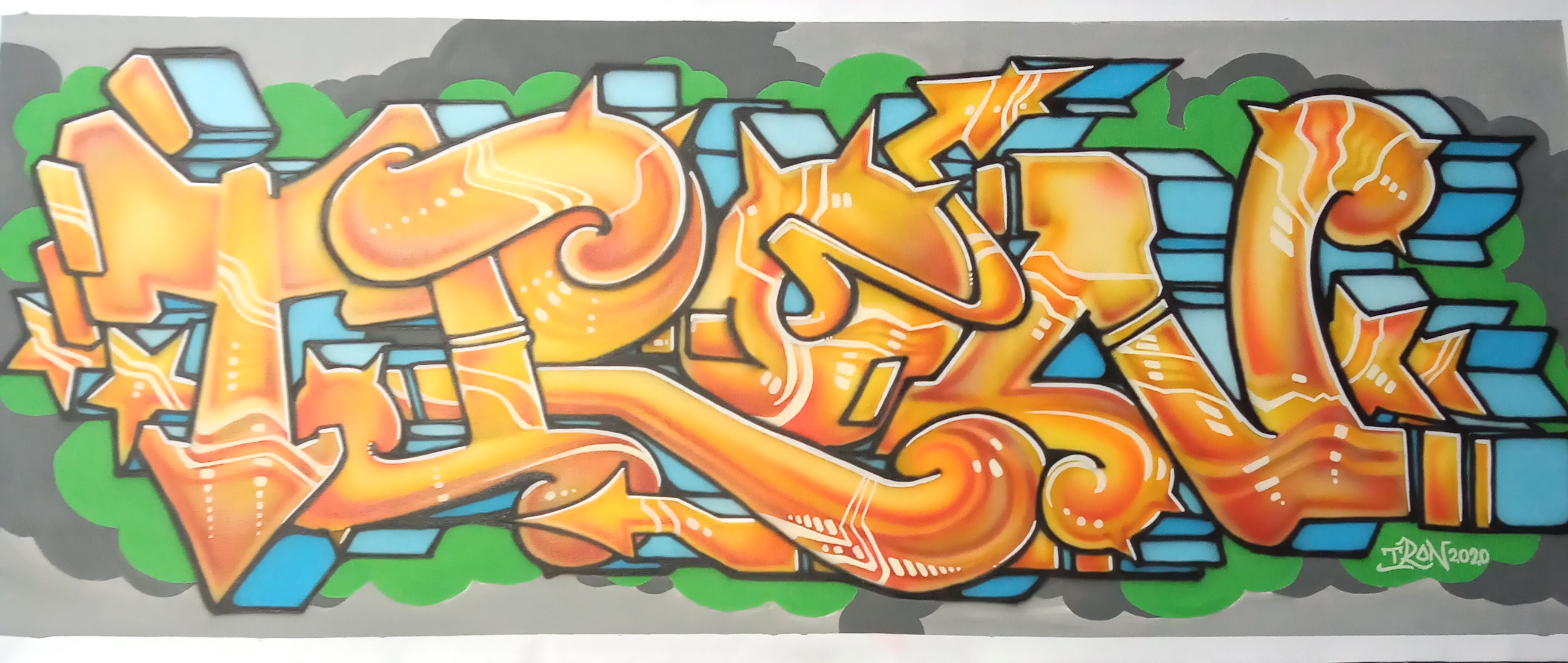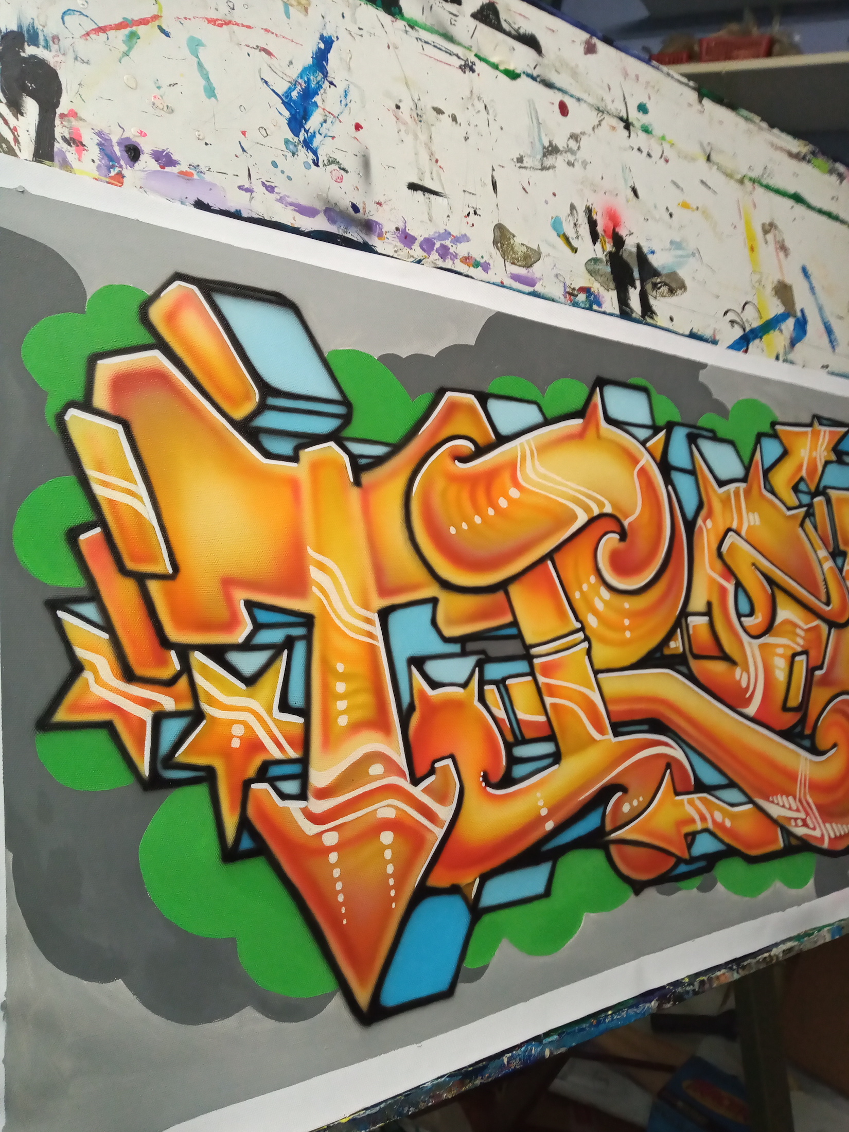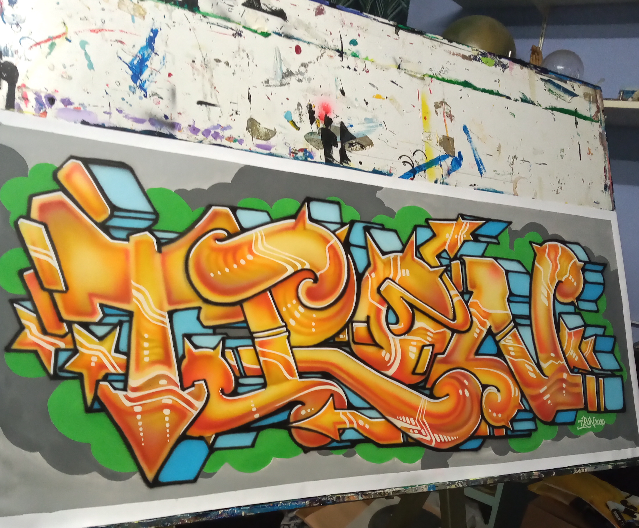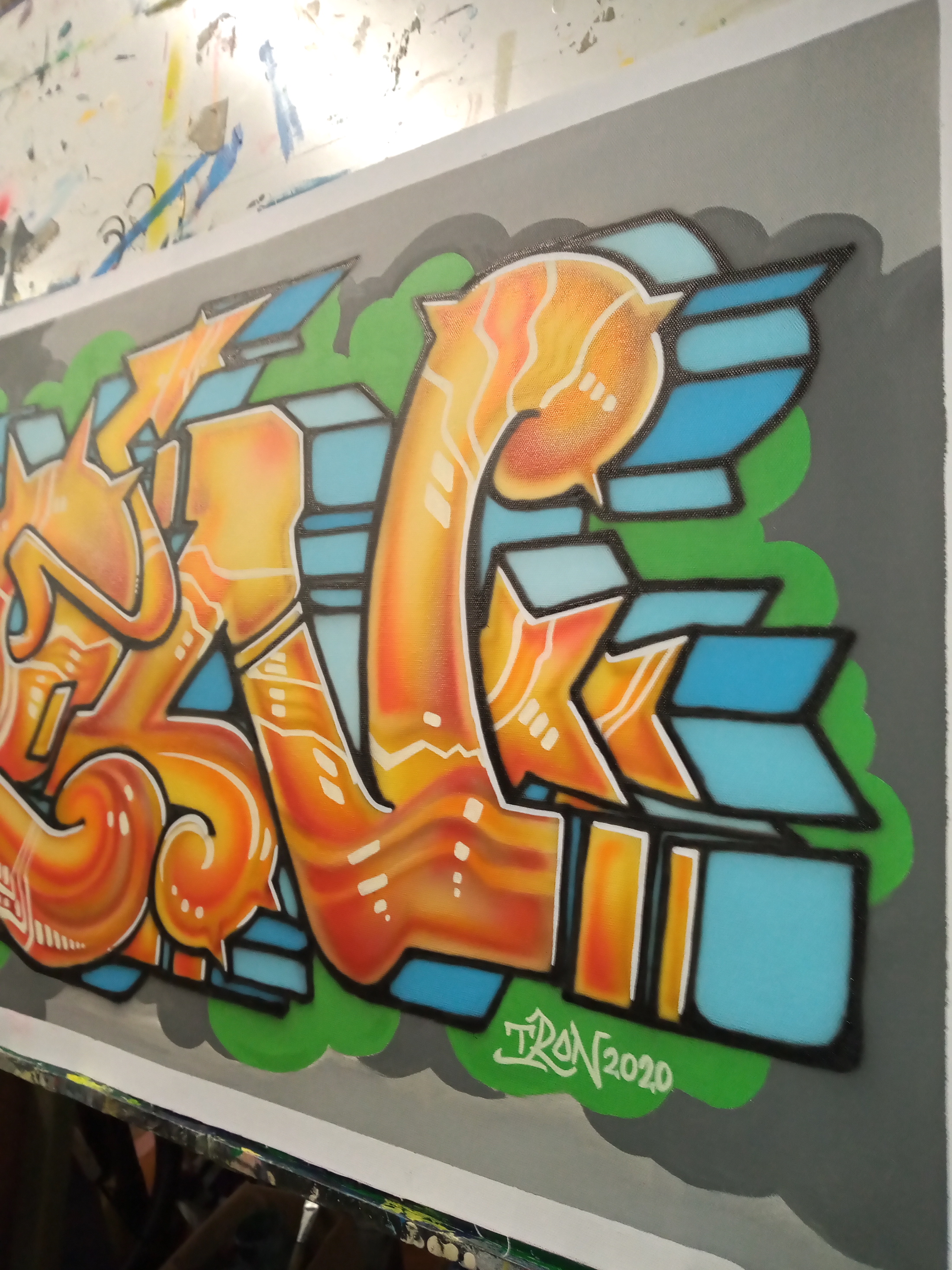 I made this canvas painting in october 2020, with acrylics; brush and airbrush techniques. I'm a graffiti artist since 1984 and was mostly active in the eighties and nineties, painting walls with spraycans. So yes, I'm from the oldschool! This canvas is sold and is on a clients' wall in the USA. I'm very happy when people enjoy my art.