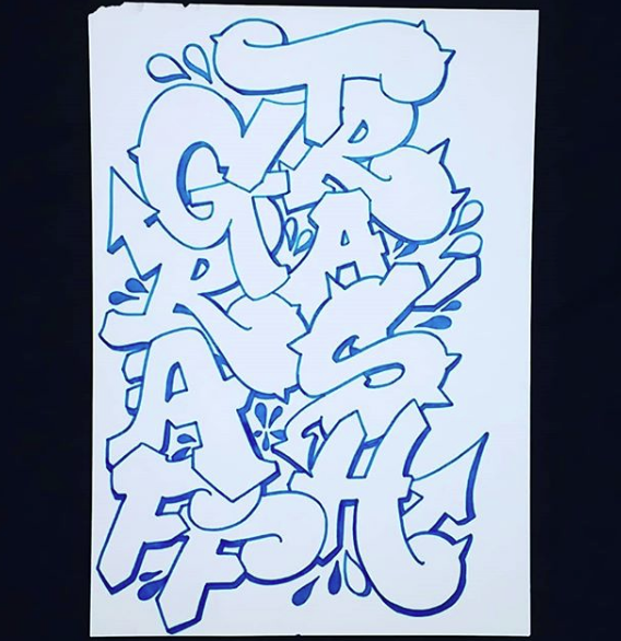 I am working on a new serie of designs for the brand "Grafftrash". I work on paper with pencil and paintmarkers. The drawings will be scanned and used for digital artworks for printing. I enjoy the process of being creative with letters really much; the freedom of making your own styles.