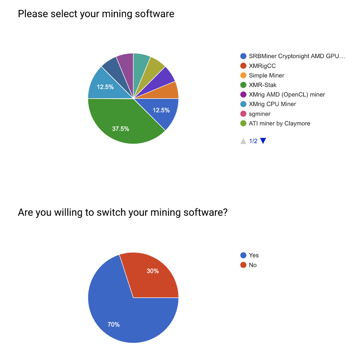 We’ve done some polling among the miners as to what mining software they use and how likely they would be to switch mining software if necessary. Here are some results so far, but we welcome you to provide your feedback as well.