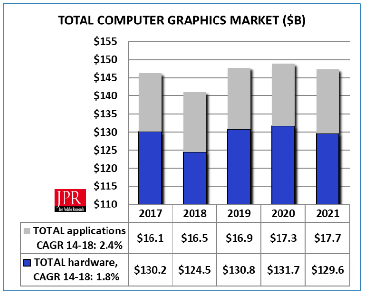 Figure 1: Overall computer graphics market actual or estimated, 2017-2021. (Source: Jon Peddie Research)